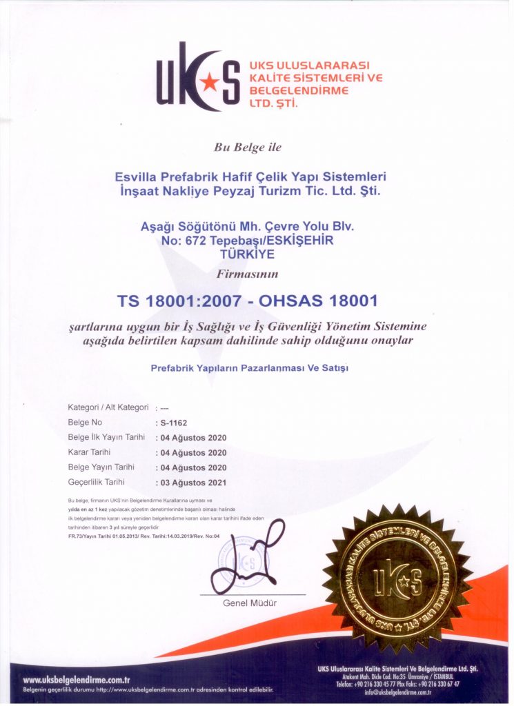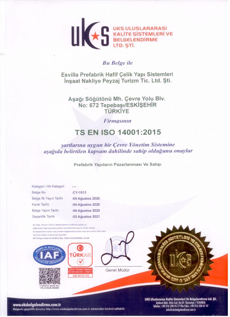 2016 yılında Eskişehir şubeli EsVilla Prefabik Hafif Çelik Yapı Sistemleri Ltd. Şti. Firmamız faaliyetinin başlangıcından bu yana büyük çaplı ve yüksek teknoloji ürünü birçok proje ile adını duyurmuştur.